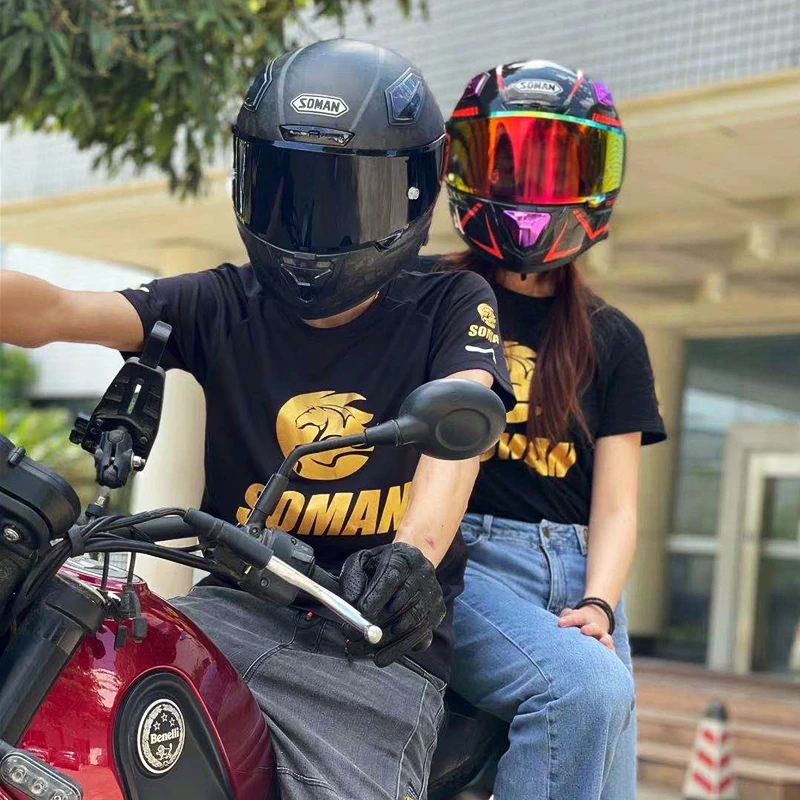 SOMAN Full Face Motorcycle Helmet Color Lens Black Carbon Fiber Racing Casque Moto ECE Men Women Road Street Visor Casco Moto