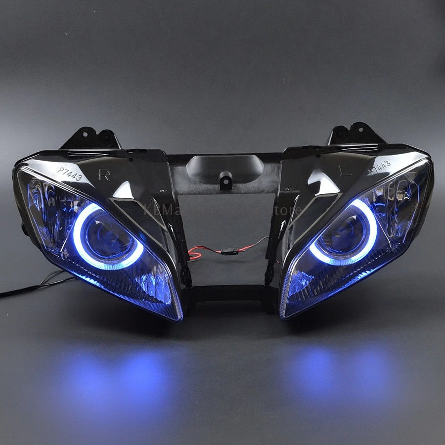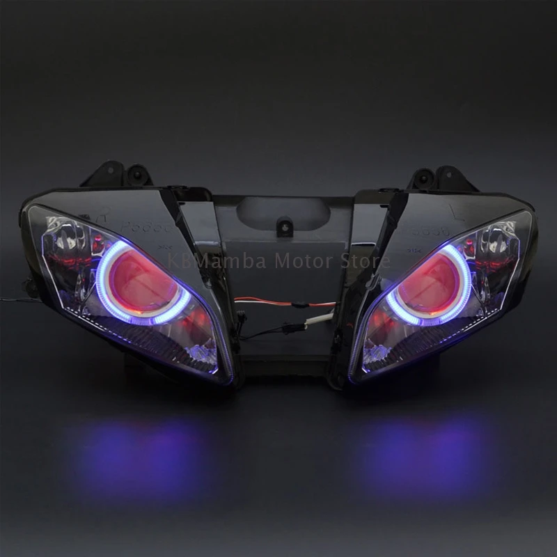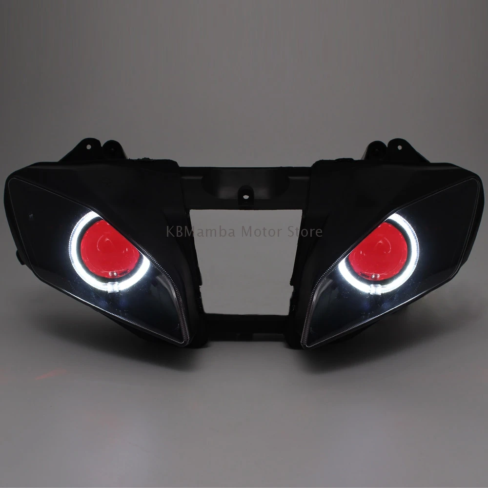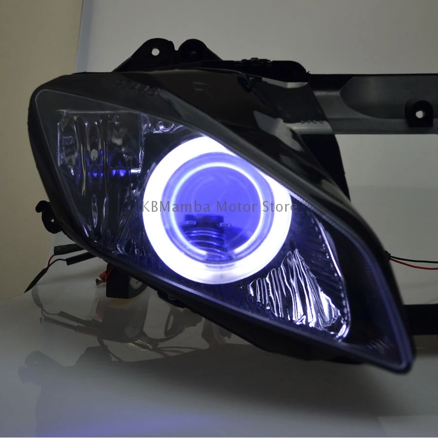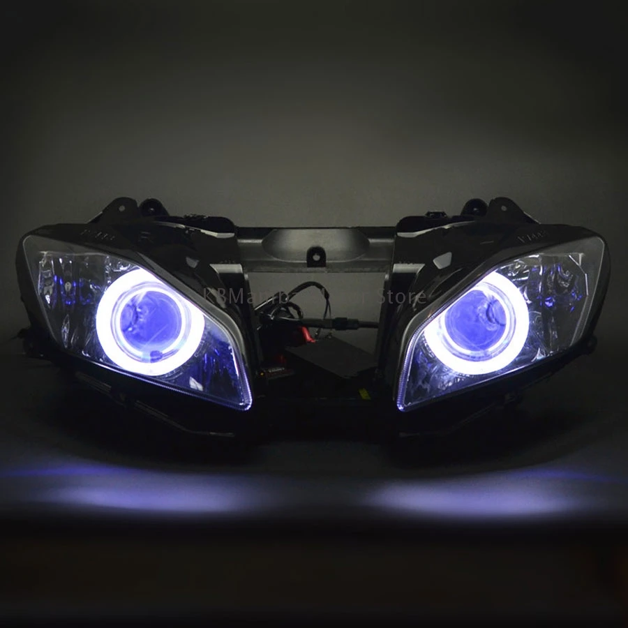 Motorcycle Custom HID Projector Headlight Assembly Angel Eye LED Headlight For Yamaha YZF R6 08-15 Headlamp Faros Led Moto Farol
