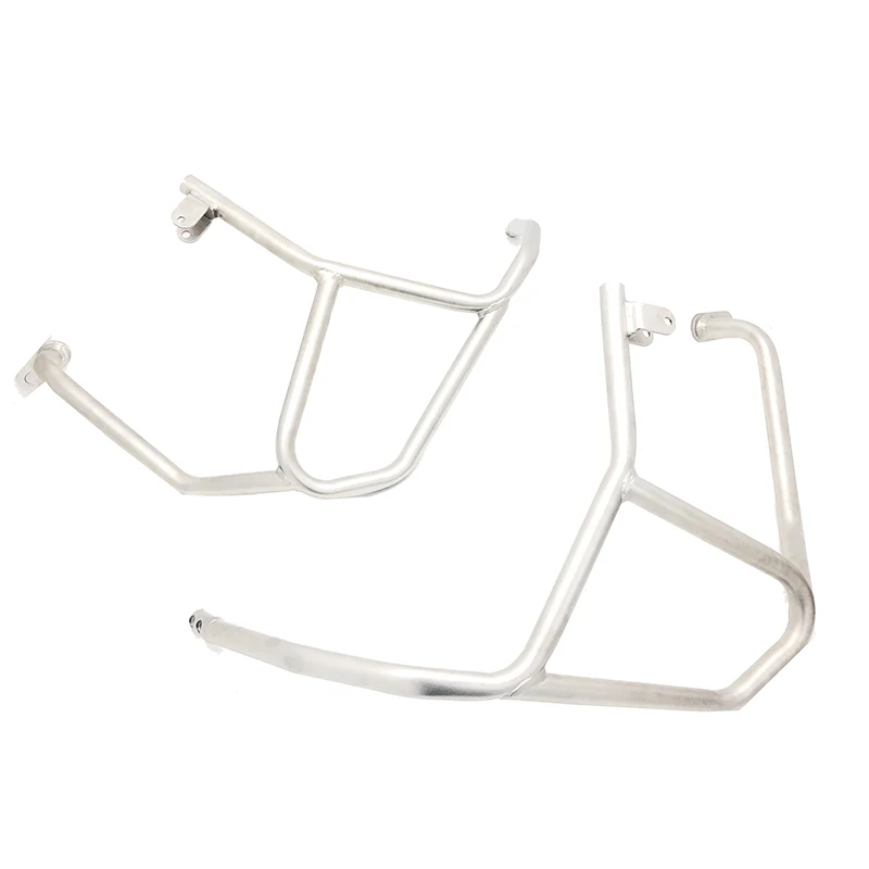 The bumper-mounted motorcycle first touches the bumper when it falls, and then the bumper deforms under the force to consume the kinetic energy of the motorcycle, which acts as a buffer to protect the motorcycle and reduce damage to the body. . At the same time, due to the lateral support of the bumper, the bumper and the exhaust pipe land on the ground when the motorcycle falls, creating a safe space for the driver, especially to protect the legs when falling. Motorcycles without bumpers will fall on their legs when they fall over. Even if the pressure does not hurt, the temperature of the engine and muffler is very high and it is easy to burn.